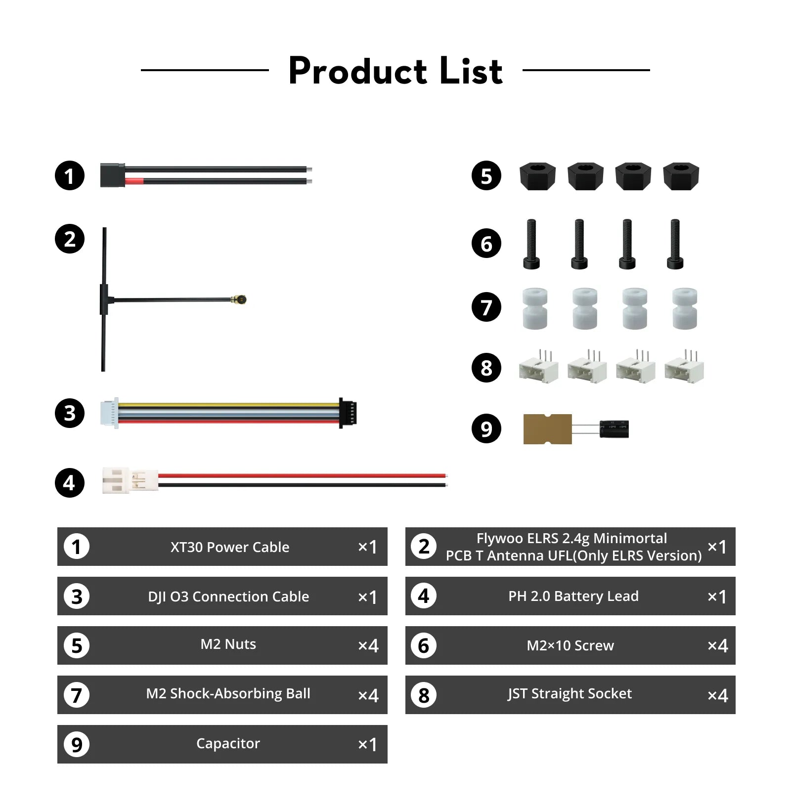 - 1x Flywoo ELRS 2.4g Minimortal PCB T Antenna UFL(only ELRS Version)