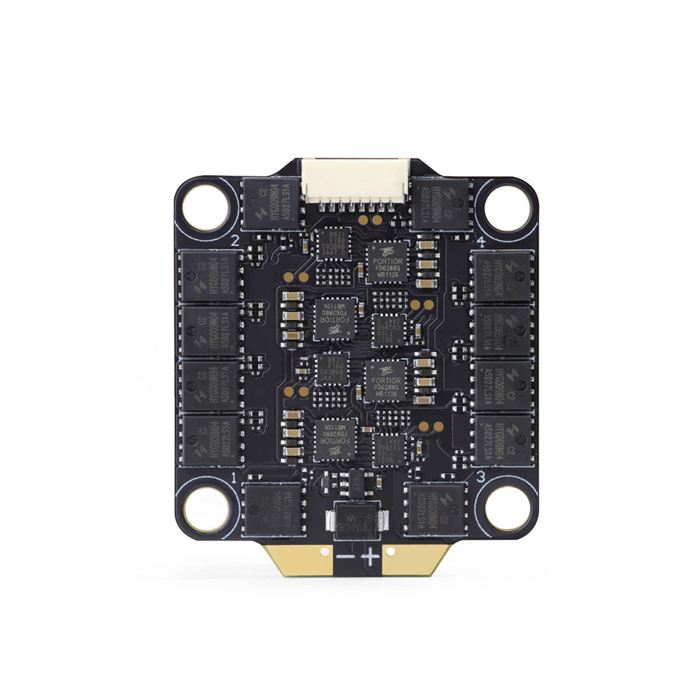 Key features: 1. BL-S 60A 4-in-1 ESC delivering consistent performance and strong flight capabilities 2. Premium immersion gold design ensures excellent heat and current tolerance, with large ESC pads and direct flight controller connection to avoid soldering 3. Compatible with DShot600/300/150 digital protocol standards.