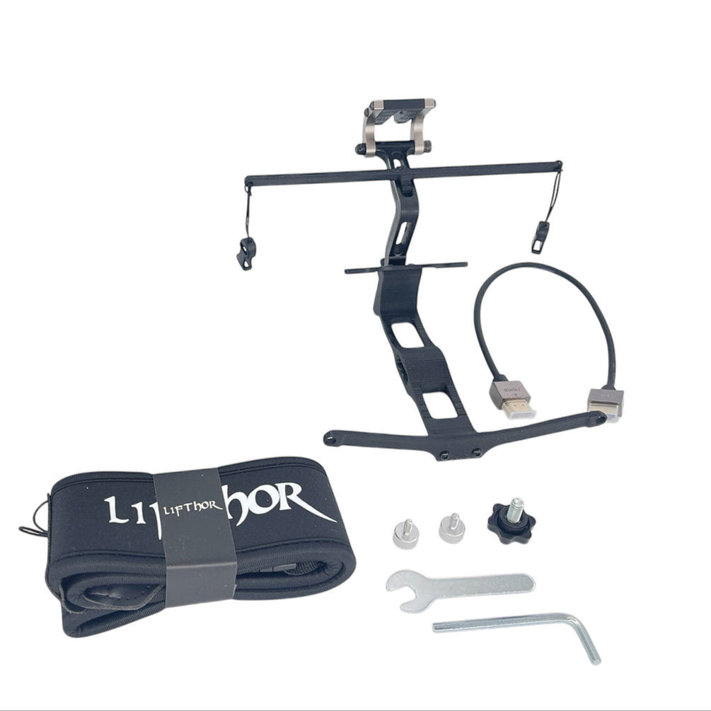 The LifThor SAGA Utility Mount for DJI RC PRO 2 offers seamless freedom and convenience when attaching an additional screen or monitor. It features quick installation and removal using two thumbscrews, a built-in tripod mount with standard 1/4"-20 threads, and an adjustable, well-balanced lanyard system to accommodate various centers of gravity.