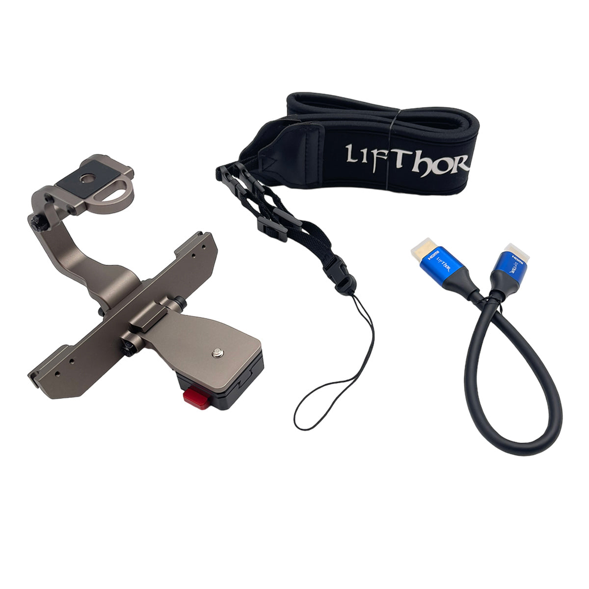 Improve your DJI RC PRO PLUS (V1 and V2) controller setup with this versatile utility mount. It features both a TRIPOD mount with the LifThor Quick Release bracket for effortless attachment to tripods like the LifThor StrapThor Pro Body Tripod, and a MONITOR mount. For added convenience, we suggest pairing the monitor mount with a Quick Release bracket to simplify installation and removal. The hinged tripod mount allows easy access to the controller’s battery bays without disassembly. The kit also includes a 30 cm HDMI cable and a durable StrapThor ACE Professional Lanyard, crafted from 100% aluminum for lasting strength and reliability.