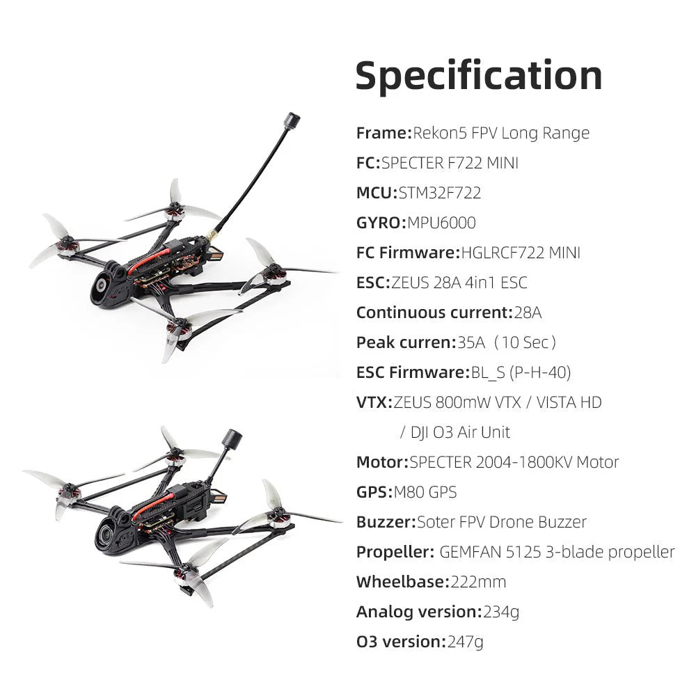 Rekon 5 Mini Long Range Quad 6S Analog Drone (ELRS 2.4G)