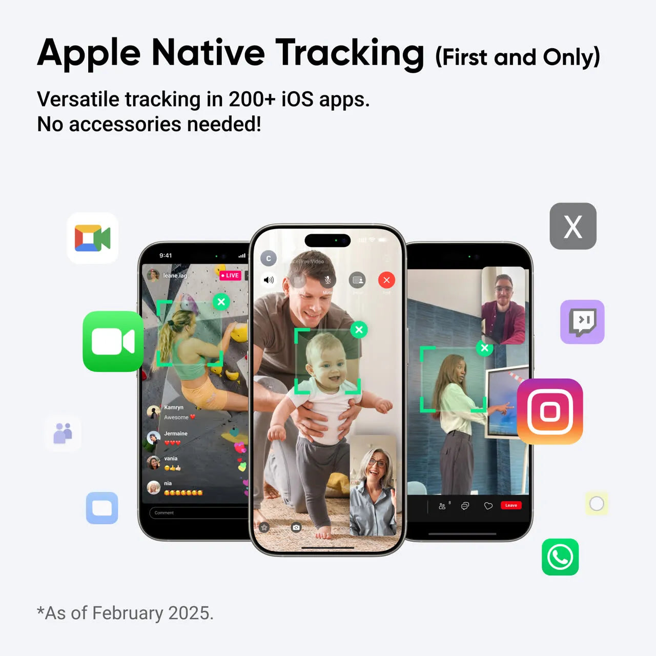 Our AI Tracker brings advanced subject tracking to any phone, any app, iOS or Android. Whether it’s people or even pets like cats and dogs, enjoy smooth AI tracking in your native camera, video calls, livestreaming, online meetings, and more.
