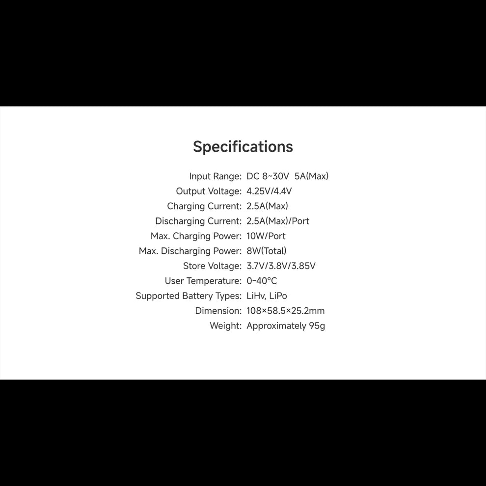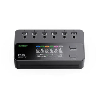 The ISDT E625 delivers precision charging for your tinywhoop fleet with six independent channels, allowing simultaneous charging of multiple LiPo and LiHV batteries. Its intelligent balancing technology ensures optimal cell voltage equilibrium, extending battery lifespan and maintaining peak performance. Compact and efficient, this charger is engineered for FPV pilots who demand reliability and speed without compromising safety.