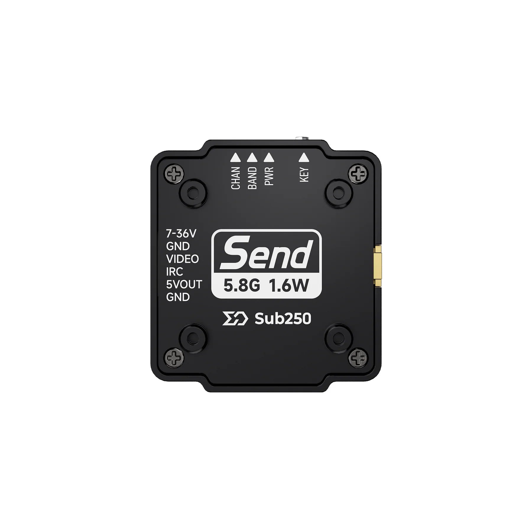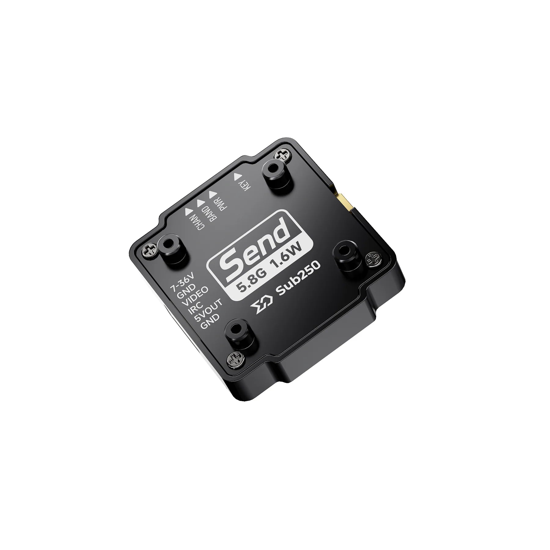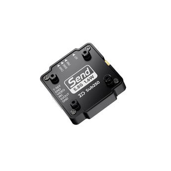 Delivering up to 1600mW for clear, long-distance video transmission, the Sub250 Send T1600 VTX combines a compact design with robust performance. It features four selectable power settings and a durable CNC aluminum casing that ensures excellent heat dissipation. Integrated temperature control safeguards against overheating, enhancing reliability during extended use.